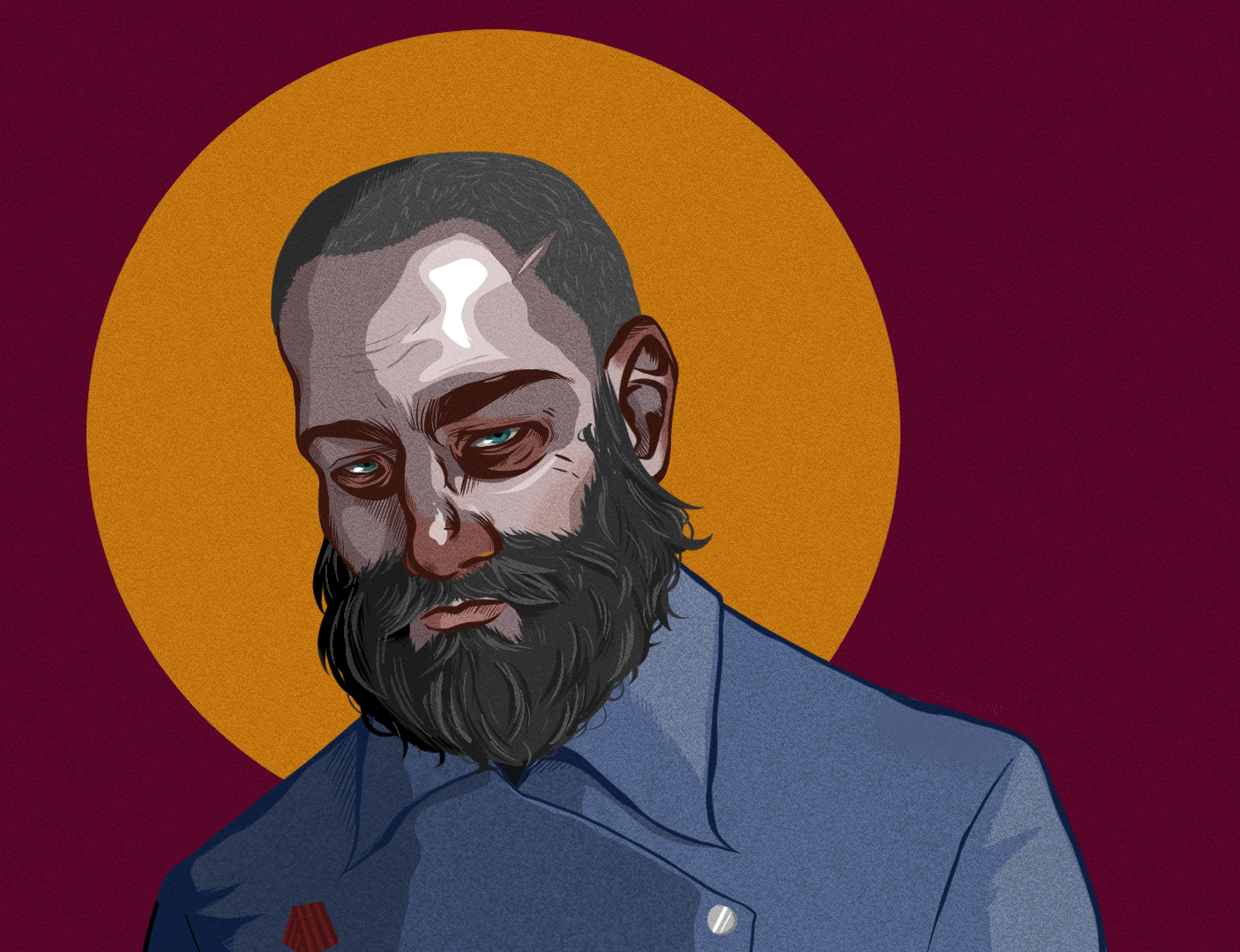 Visual Description: Grigoriy is a tall, hunched man with a thick unkempt beard. His eyes are a deep blue, beady, and hard to see under his thick eyebrows. What’s left of his hair is thin, sparse and greying. His arms are covered in light scars from years scratching them as a coping mechanism/self punishment, almost always hidden underneath his military uniform, which he stopped properly maintaining years ago. His weariness makes him look older than he is.